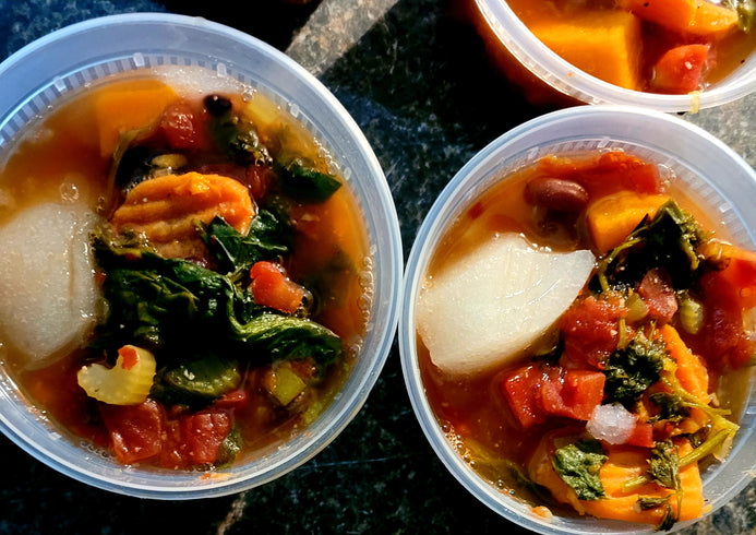 Filled with broth and vegetables and a serving of unflavored sea moss. This soup will definitely clear up congestion and make you feel better!!